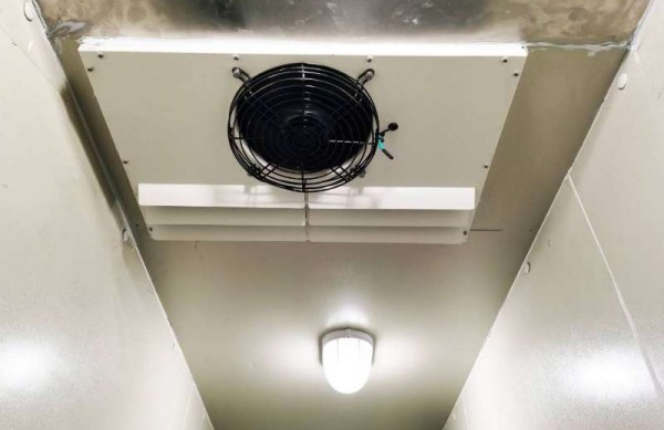 按照蒸發(fā)管裝置的方式又可分直接冷卻和間接冷卻兩種。直接冷卻將蒸發(fā)管安裝在冷藏庫房?jī)?nèi),液態(tài)冷卻劑經(jīng)過低壓蒸發(fā)管時(shí),直接吸收庫房?jī)?nèi)的熱量而降溫。間接冷卻是由鼓風(fēng)機(jī)將庫房?jī)?nèi)的空氣抽吸進(jìn)空氣冷卻裝置,空氣被盤旋于冷卻裝置內(nèi)的蒸發(fā)管吸熱后,再送入庫內(nèi)而降溫。空氣冷卻方式的優(yōu)點(diǎn)是冷卻迅速,庫內(nèi)溫度較均勻,同時(shí)能將貯藏過程中產(chǎn)生的二氧化碳等有害氣體帶出庫外。